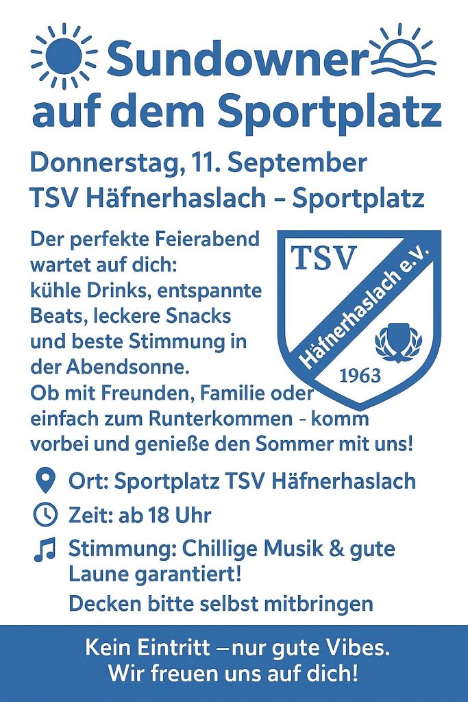 Sundowner 09/2025 Veröffentlicht 11. September 2025 Zuletzt aktualisiert am 3. September 2025 Karte nicht verfügbar Datum/Zeit Date(s) - 11.09.202518:00 - 22:30 Teilen mit: Klicken zum Ausdrucken (Wird in neuem Fenster geöffnet) Drucken Klicken, um auf WhatsApp zu teilen (Wird in neuem Fenster geöffnet) WhatsApp Klick, um auf Facebook zu teilen (Wird in neuem Fenster geöffnet) Facebook Mehr Klicken, um einem Freund einen Link per E-Mail zu senden (Wird in neuem Fenster geöffnet) E-Mail Ähnliche Beiträge